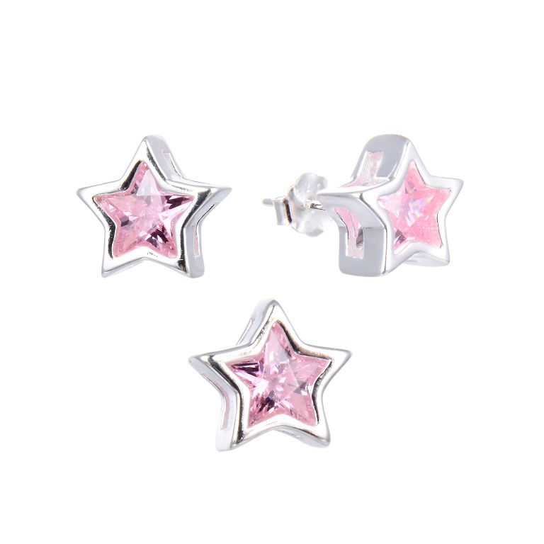Conjunto de collar y aretes de estrella rosa, plata 925