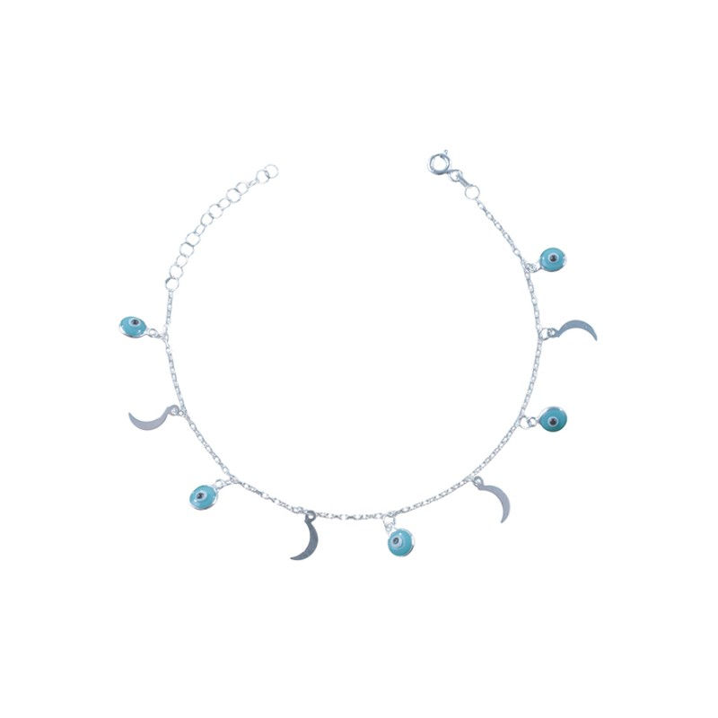 Pulsera con dije de ojo turco y lunas .